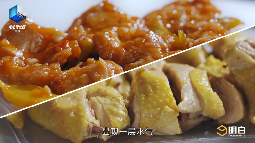 糖醋鱼和白切鸡的表面出现一层水汽,炸过的鱼皮因为吸收了空气中的水分而变得不再酥脆,鸡皮也失去原本的爽滑口感。