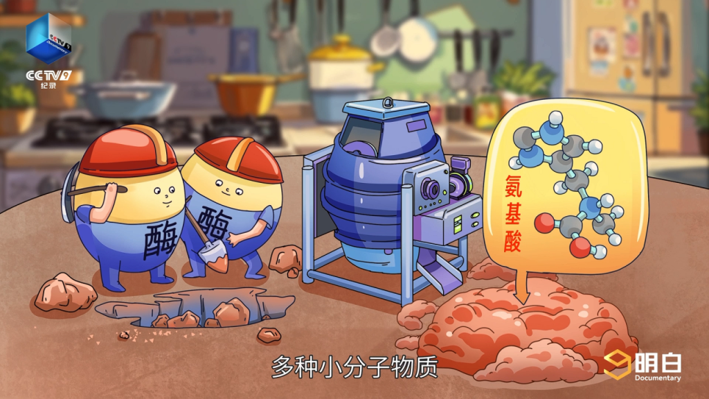 不过,这些动物性食物中含有多种酶,在酶的作用下,食物的蛋白质、脂质等营养成分正在被分解成氨基酸等多种小分子物质。