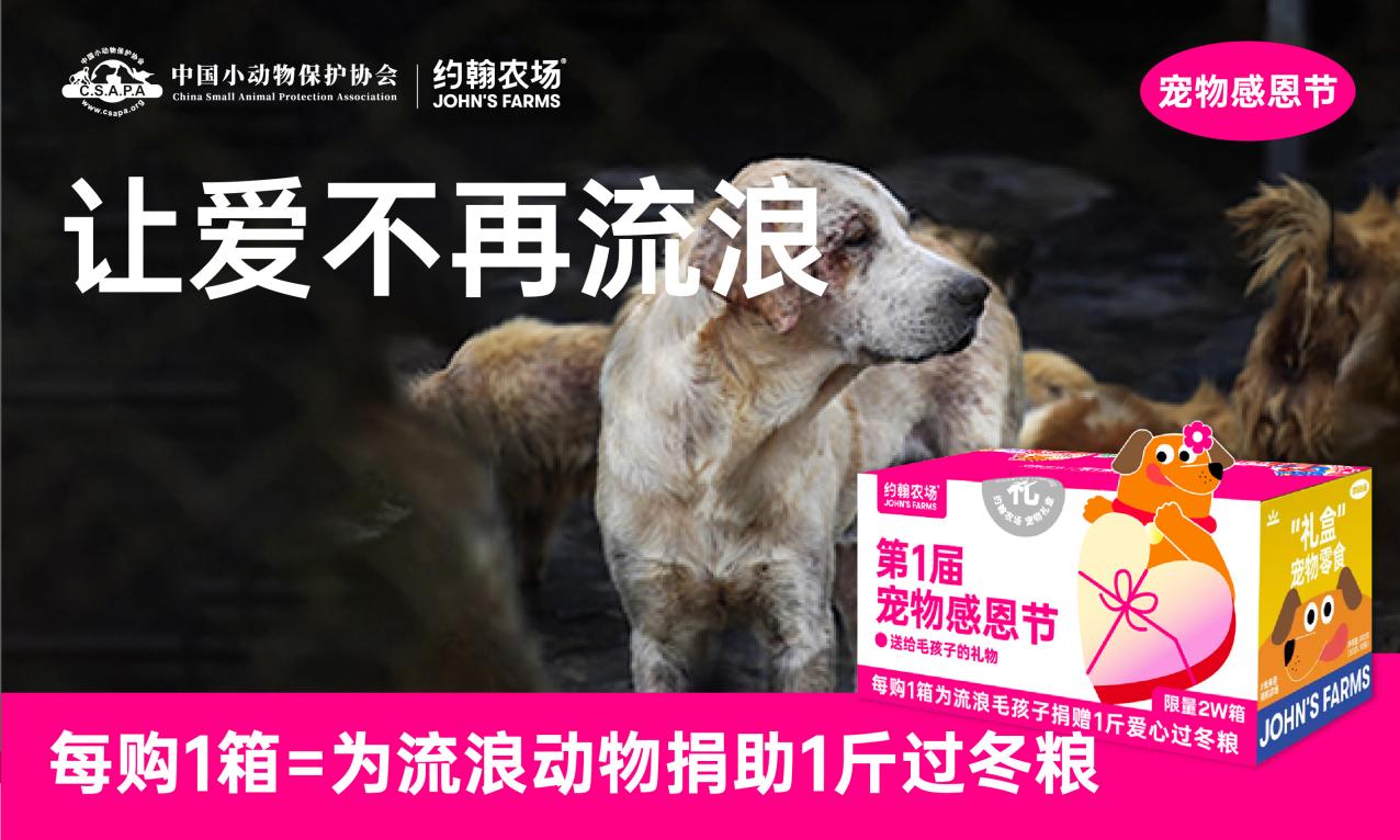 在“宠物感恩节”期间,约翰农场不仅呼吁养宠家庭感恩身边的小伙伴,还将目光投向了无依无靠的流浪动物。品牌已备齐2万斤过冬粮,并宣布在活动期间启动长期捐助计划,每售出一箱“约翰农场小黄箱”,便会为流浪动物捐出1斤过冬粮,上不封顶。这一举措不仅为流浪动物提供了物质援助,更展现了约翰农场对每一条生命的深情关注与承诺。