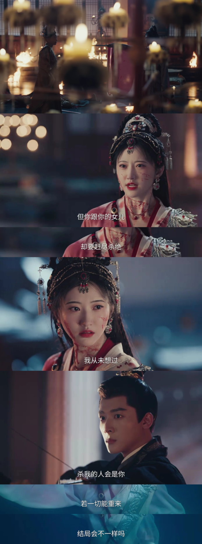 南乌攻陷大周,景甜饰演的女主姜似满身血泪,刚手刃了大周长公主,转眼间就被张晚意饰演的男主亲手射杀。