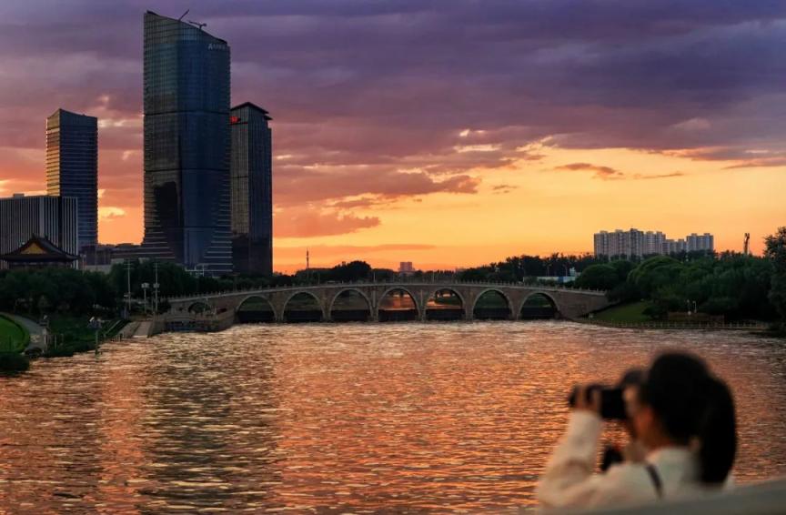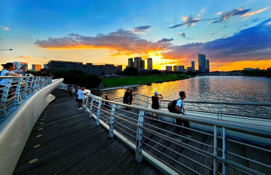 市民大运河畔欣赏美丽晚霞。方非 摄