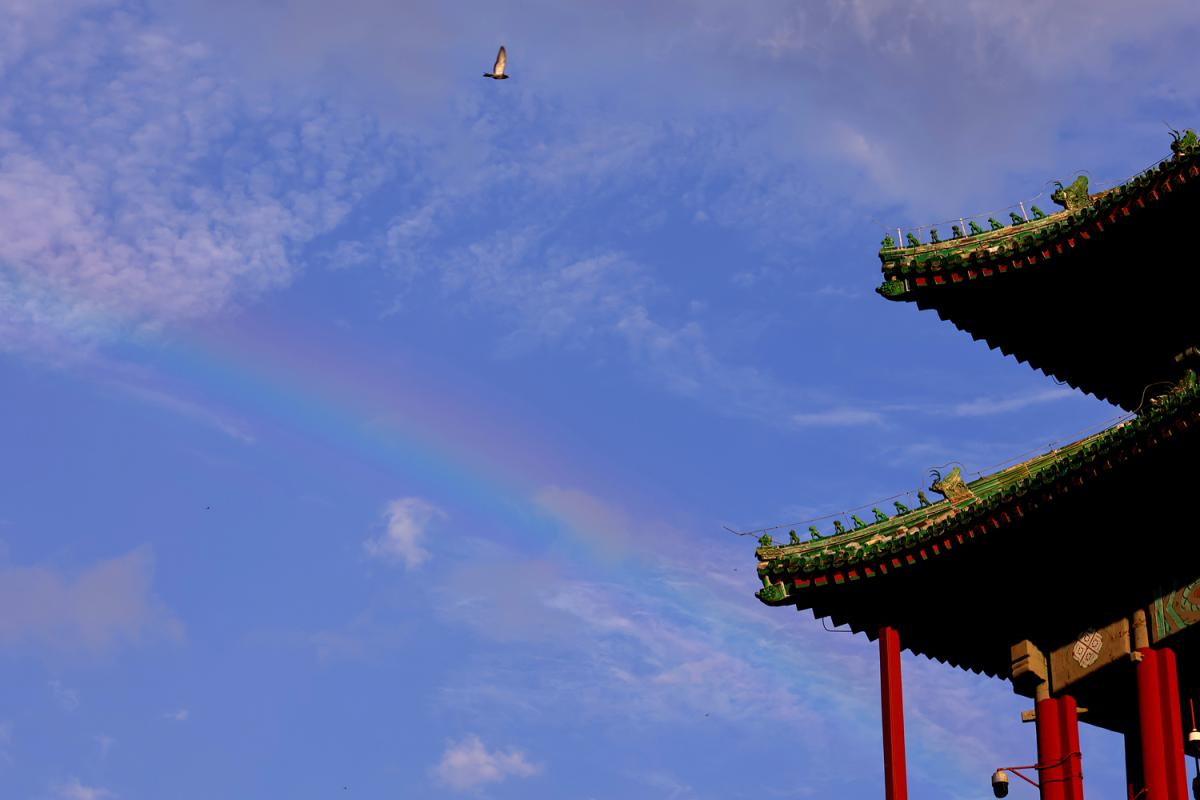 雨后的和平门附近,依稀可见一道彩虹。温红征 摄
