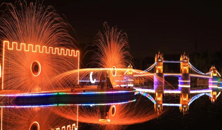 除新颖的彩灯外,世界公园配备特色演艺及非遗打铁花,同时通过各大区域主题鲜明的美食、文创等商业配套,将世界公园中微缩的世界文明地标转化为有体验、有叙事、有内涵的沉浸式光影艺术盛宴。