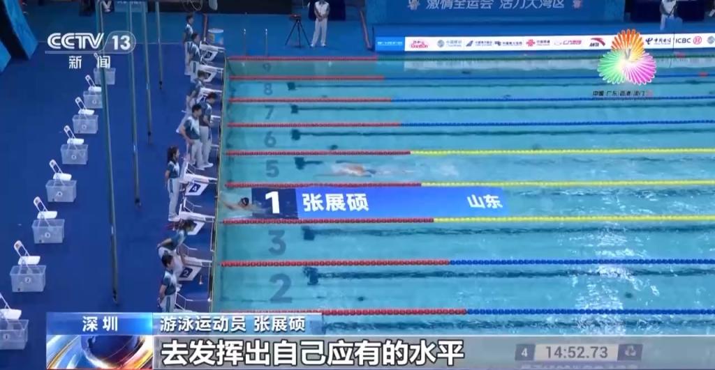 游泳运动员 张展硕:四年前,自己是下定决心在下一届全运会上去有所突破。第一天晚上决赛那一枪400米自由泳,是游泳项目的第一枚金牌,也为后边7天的比赛奠定了很好的基础。