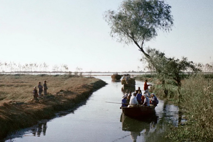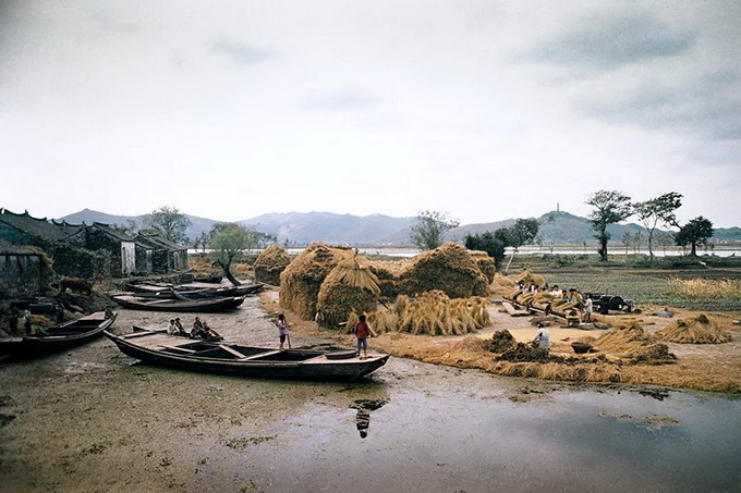 水乡农民种的地离家很远,需要坐船往返去上工。