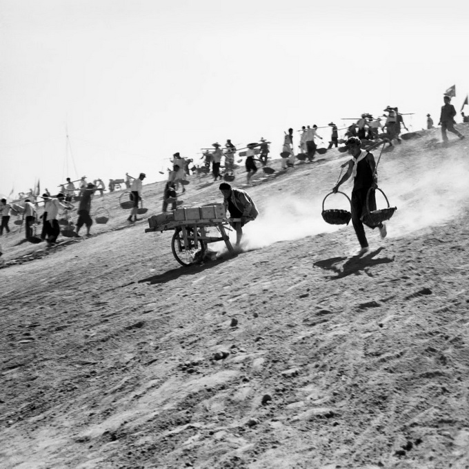 20世纪五六十年代,全国人民“鼓足干劲”投身到新中国建设中。袁毅平的影像记录了早期工业进程中的汽车工业、水利建设、交通运输等。他的影像既展现了社会主义劳动的群体面貌,也将目光投向了普通人。