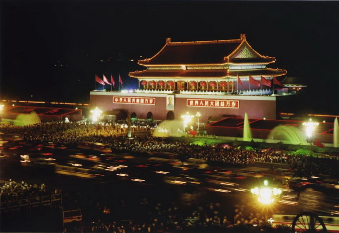 一幅《东方红》让袁毅平广为人知,也在很长一段时间内成为他的刻板标签,不管怎样,五十年里,袁毅平在特定时期对于天安门的记录已将“天安门”这一象征符号与中国的历史节点牢牢地嵌在了一起:五十年代的五一劳动节及天安门广场扩建,六十年代的“东方朝霞”,七十年代悼念毛泽东的肃穆广场,还有1997年香港回归之夜的天安门城楼。作为建筑,天安门不会随着时间的流逝而老去;而作为符号,它留存于袁毅平的影像中,静默地等待今人的重新解读。