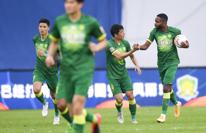 北京中赫国安队球员在比赛中 资料图 新华社记者许畅摄