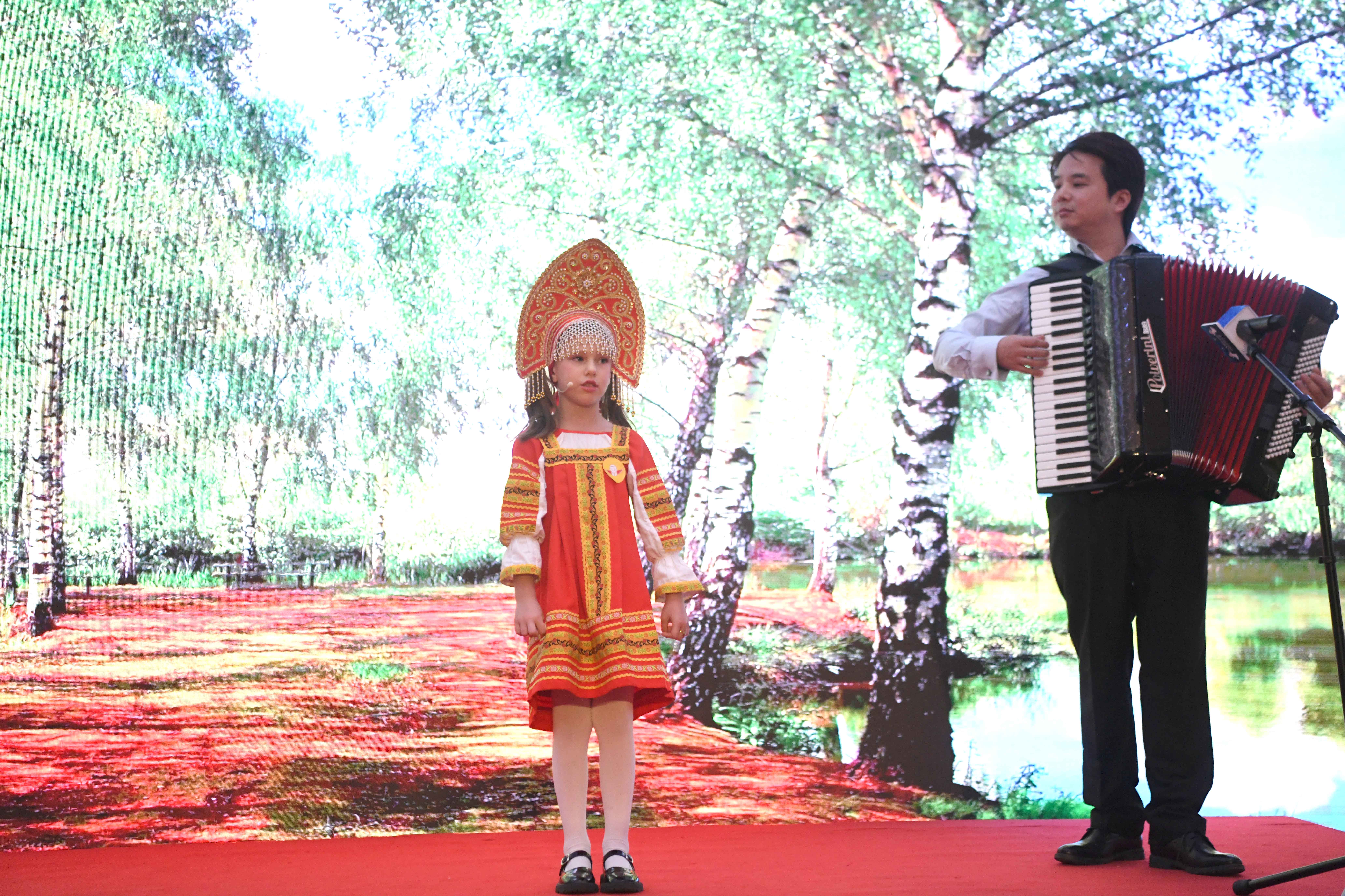 6岁的纳伊丽刚从俄罗斯来中国不久,还不会汉语,就用一个多月和中国音乐老师晓玄排演了一曲经典的《喀秋莎》。