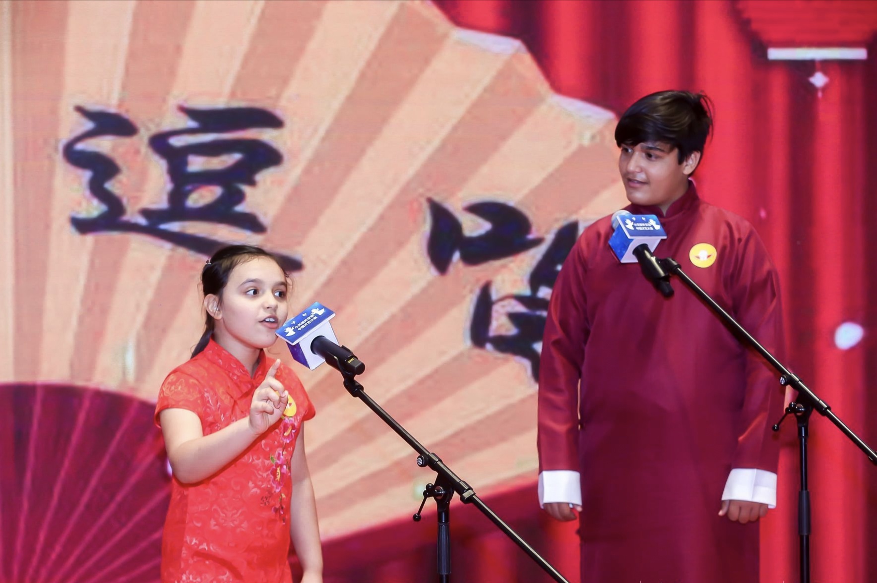 白雪和哥哥穆森联袂表演的相声是整场比赛的压轴节目。兄妹俩都生在北京,长在北京,在北京上学,一口京片子和时不时蹦出的俚语令人忍俊不禁。