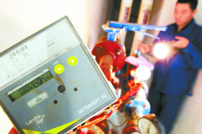 2010年,供热单位为郑常庄一小区内的热计量表进行首次抄表。戴冰/摄