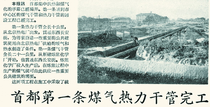 1958年,北京成立煤气热力公司。当年9月,在苏联全面援助下建设的大型高温高压热电厂——北京第一热电厂开始发电了。本报1958年9月6日5版《谈谈热电厂》曾有记载,这个热电厂全部建成后,能以强大的电力供给京、津、唐等电力网,并向东郊区的许多工厂供给蒸汽和热水。