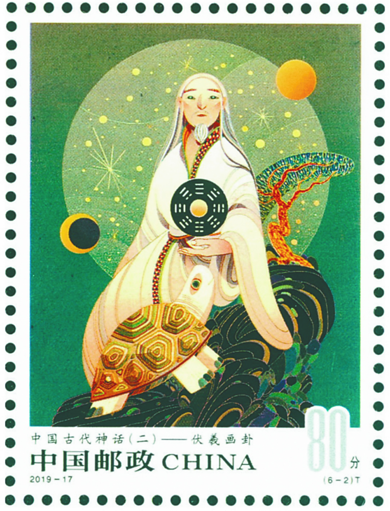 中国邮政发行的《中国古代神话》之“嫘祖始蚕”和“伏羲画卦”