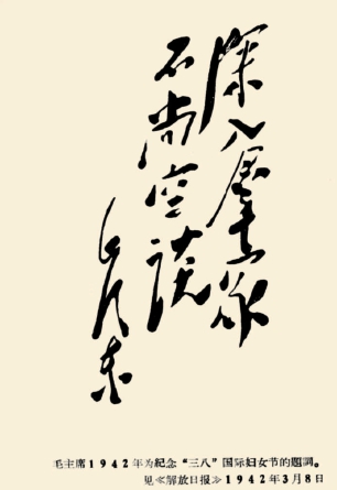 毛泽东 为《解放日报》三八妇女节特刊题词:深入群众,不尚空谈。
