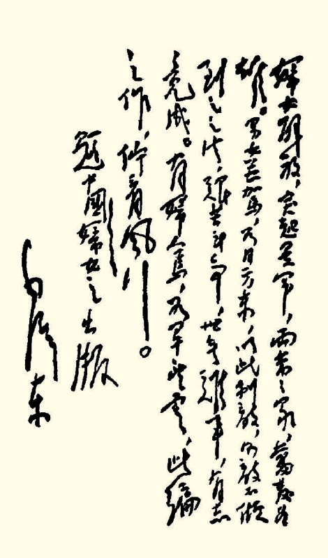 毛泽东 为《中国妇女》创刊题词:妇女解放,突起异军。两万万众,奋发为雄。男女并驾,如日方东。以此制敌,何敌不倾?到之之法,艰苦斗争。世无难事,有志竟成。有妇人焉,如旱望云。此编之作,伫看风行。题《中国妇女》之出版。