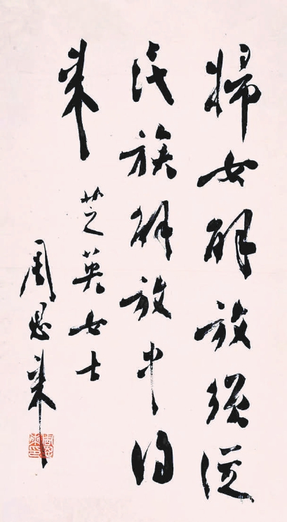 周恩来 为浙江绍兴北海小学校长任芝英题词:妇女解放须从民族解放中得来。芝英女士,周恩来。