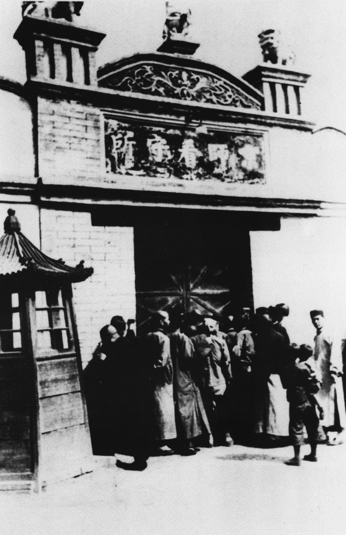 李大钊身着棉袍,在镜头前留下了最后一张照片:头发剃去了,宽阔的额头,浓黑的双眉,两眼目光淡定,脸上泰然自若,宛如平日。
