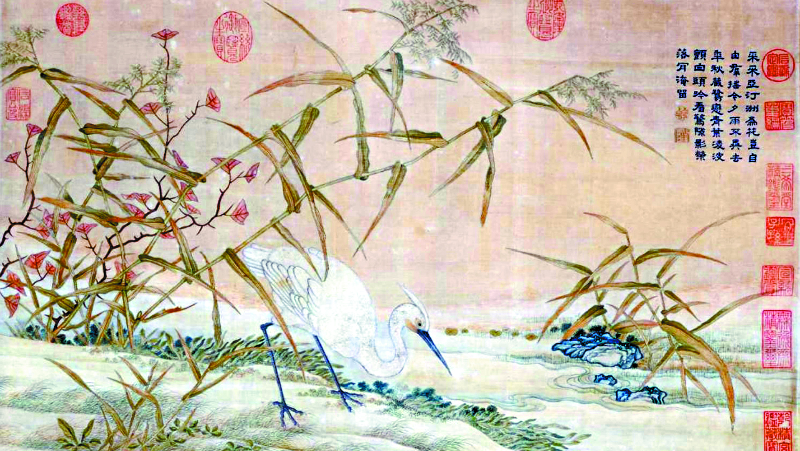 (清)乾隆《缂丝乾隆御制诗鹭立芦汀图》轴