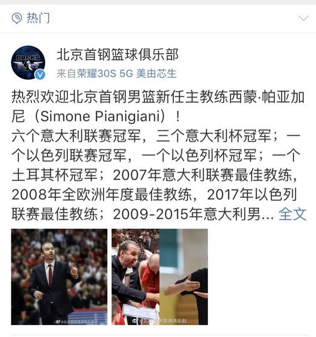 原标题:北京首钢官宣新任主教练